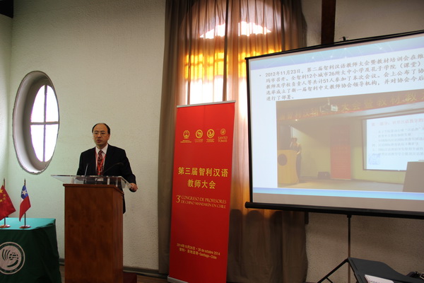 本次大会包括智利中文教师协会工作报告、教学研讨、经验交流,以及增补智利中文教师协会副会长、理事等多项内容。会上,智利中文教师协会执行会长、圣托马斯大学孔子学院中方院长沙宗元作协会工作报告,多名教师代表分别就智利的华文教育现状、志愿者与智利汉语教学、如何做一个受欢迎的汉语教师等作专题报告。