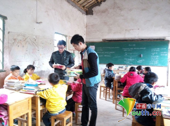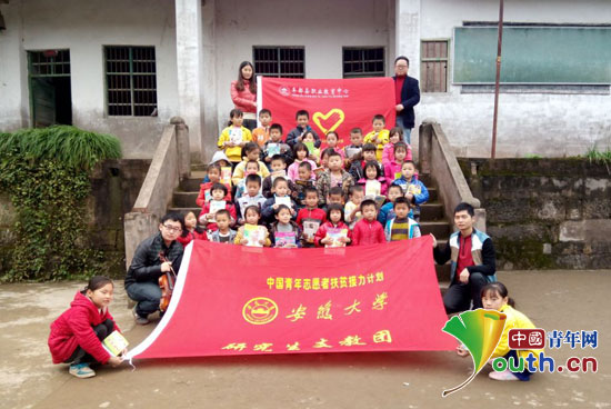 安徽大学第十六届研究生支教团成员来到田家沟小学捐赠书籍。