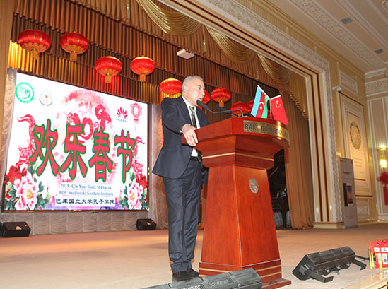2月28日上午,阿塞拜疆巴库国立大学孔子学院举办“2015欢乐春节”活动,中国驻阿塞拜疆大使宏九印、巴库大学校领导和孔子学院中外方院长受邀出席。孔子学院及教学点部分师生、巴库国立大学中国留学生代表以及阿塞拜疆各界友好人士代表共500余人参加该活动。