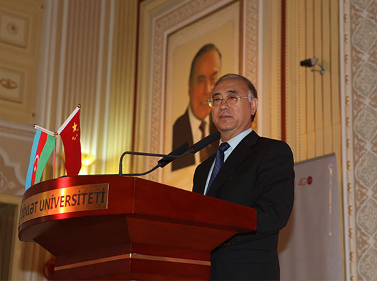 宏大使在致辞中指出,巴库国立大学孔子学院为推广中国语言文化,加强中阿传统友谊,推动中阿人文领域关系稳步发展做出了重要贡献,他勉励大家再接再厉,更上一层楼。