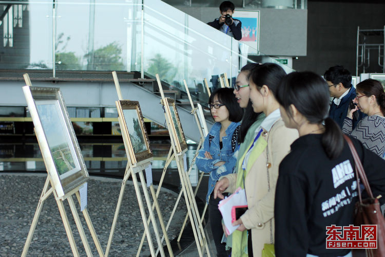 安徽大学学生油画作品展吸引众多人围观。
