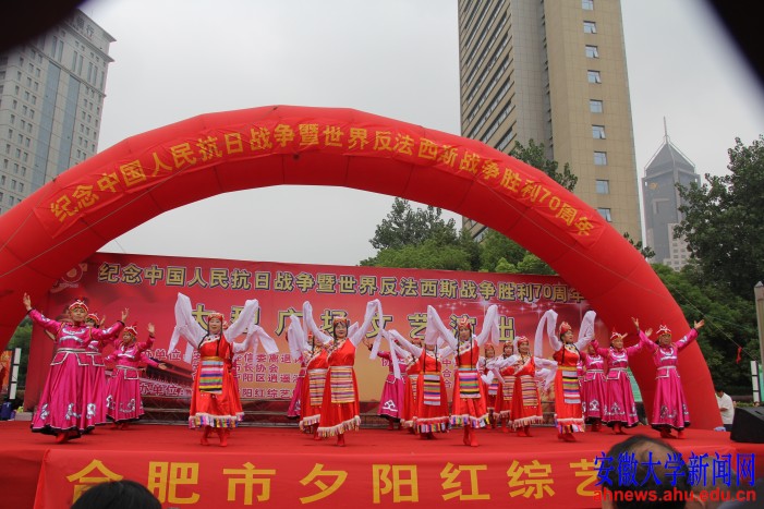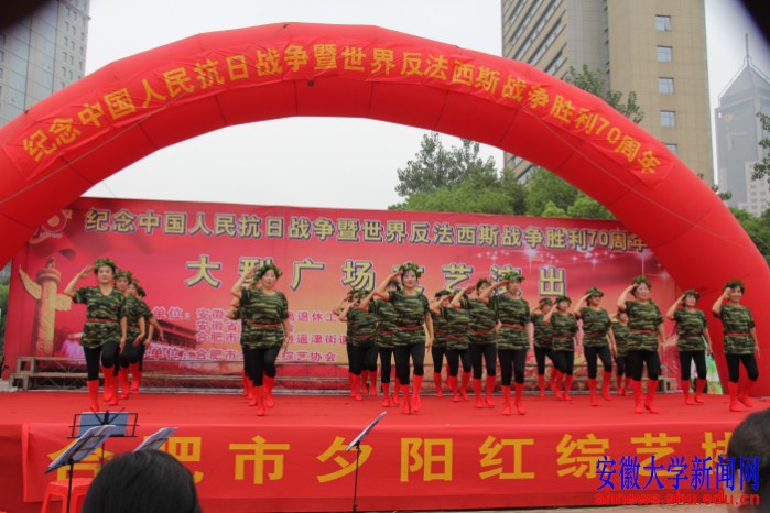 本网讯(刘勤)9月12日上午,安徽大学女知联艺术团一行30人在合肥市人民广场参加了纪念中国人民抗日战争暨世界反法西斯战争胜利70周年大型广场文艺演出活动。