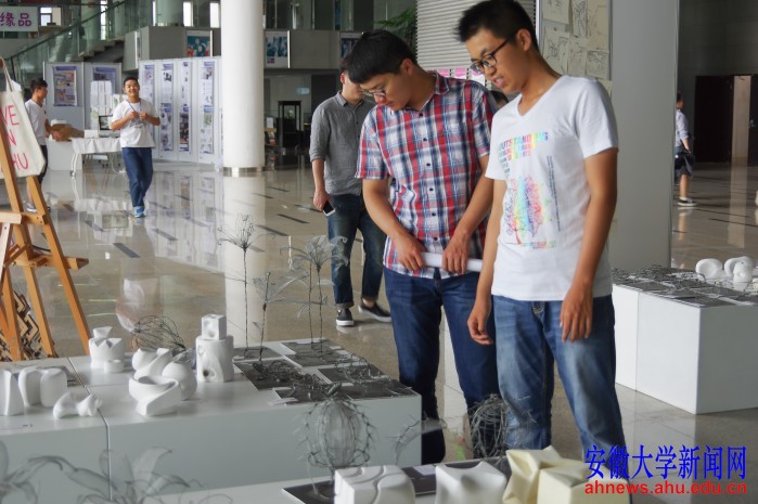 本网讯(新闻中心学生记者 孟圆圆 陈舒霞 周子安)连日来,以“不拘一格,光荣绽放”为主题的工业设计作品展在磬苑校区文典阁一楼展厅举行。本次展览作品共计300余件,由安徽大学电气工程与自动化学院工业设计专业13级和14级全体学生提供,分为造型基础、设计色彩、旅游产品、材料工艺研究模型等类型。