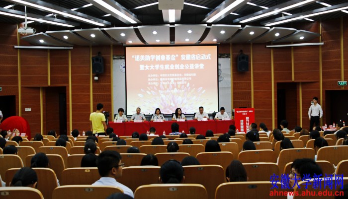 本网讯(学生记者 邹颜灵 郭云涛)9月22日上午,诺美助学创业基金安徽省启动式暨女大学生就业创业公益讲堂活动在文典阁举行。我校此次共有30名女大学生受到资助。