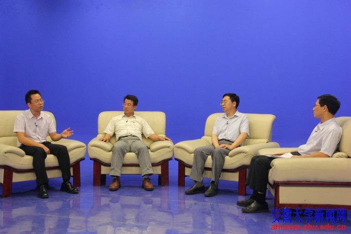 本网讯(新闻中心学生记者 董娴雅 陈玥君 徐鹤)9月25日下午,“大学文化对话”第六季节目在校电视台虚拟演播厅举行。本次节目邀请台南大学人文与社会学院院长林登顺教授、华中科技大学人文学院中文系主任王毅教授、西北大学文学院教授李浩作为访谈嘉宾。安徽大学文学院院长吴怀东教授担任主持。3位嘉宾围绕“中文学科的发展与大学文化”这一主题进行了探讨交流。