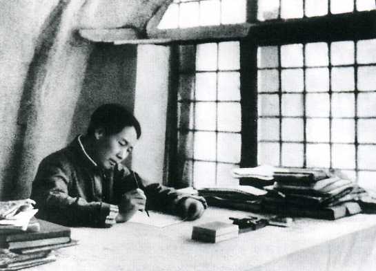 1938年春,毛泽东在延安窑洞撰写《论持久战》