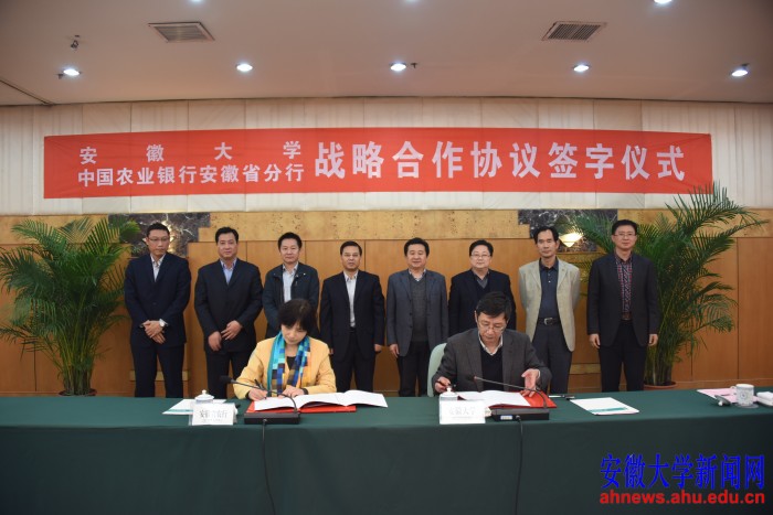 我校与安徽省农行的合作始于2003年的“校园一卡通”项目建设。10多年来,双方合作范围不断扩大,合作关系持续深化,在资金、结算、校园信息化建设、新校区建设等方面开展了良好的合作。未来10年,农行将向我校提供不低于5亿元的意向性信用额度,全力服务于我校基础设施建设、大型教育教学设备采购、产学研项目转化等,助推我校早日建成国际知名、国内一流高水平大学。