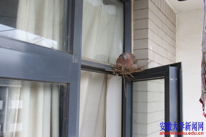鸟儿在杏园1612寝室窗上筑巢