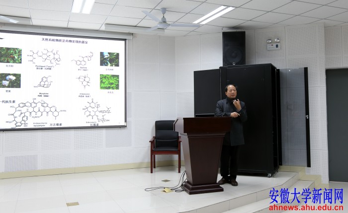 本网讯(学生记者 陈玥君 洪安)11月30日下午,中国科学院院士涂永强在磬苑校区理工H楼报告厅作了题为《C-C键重排及生物活性天然产物合成》的学术报告,报告会由安徽大学科学技术处处长肖亚中主持。