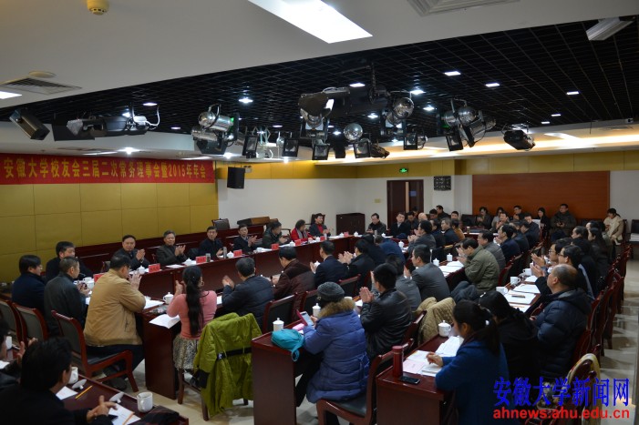 本网讯(通讯员 李小琼)12月6日,安徽大学校友会三届二次常务理事会暨2015年年会在磬苑校区召开。校党委书记李仁群、校长程桦、校党委副书记许继荣,校友会会长黄德宽、常务副会长杨家芹、副会长杜先能等出席大会。会议由杨家芹主持。