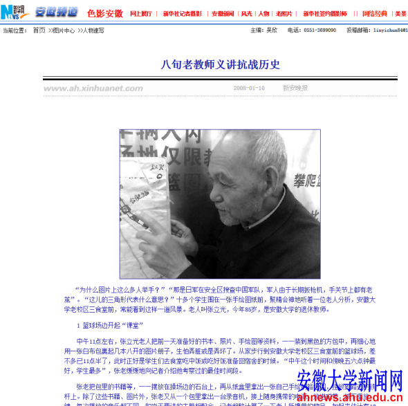 本网讯(新闻中心 蔡丽丽,学生记者 莫赛)我校退休老师张立光因十四年前的一次偶然发现,令他下定决心将宣讲抗战历史进行到底。这一讲,就是十五年之久。十余年来,安大操场的学生、公交站台的乘客、爬大蜀山的游客……都曾是他的听众,寒来暑往,老人默默坚持,坚守初心。不久前,张立光被评为全国基层理论宣讲先进个人。