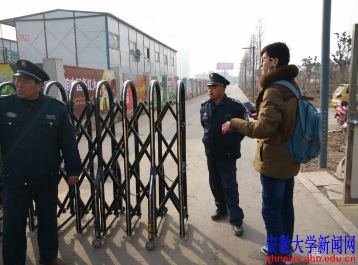 淮北塌陷坑调研队与南湖公园保安交谈