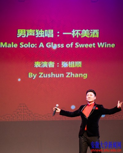 张祖顺在晚会上演唱《一杯美酒》