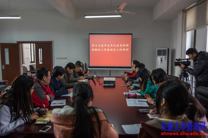 本网讯(新闻中心 徐红 通讯员 高凤仪 学生记者 沈劲松 苏诗洋 周子安)2月24日下午,安徽大学党委宣传部、新闻传播学院在人文楼A201会议室召开座谈会,学习习近平总书记在党的新闻舆论工作座谈会上的重要讲话精神,交流学习体会。