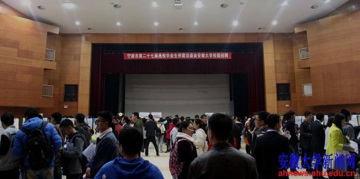 本网讯(学生记者 陈舒霞 刘成浩 王方怡)3月5日,2016年宁波市第27届高校毕业生供需洽谈会安徽大学校园招聘会在磬苑校区举办,48家用人单位前来我校招聘2016届毕业生。