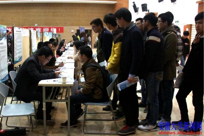 面对众多前来应聘的学生,用人单位代表耐心地解答着应聘学生的问题,还热情地介绍单位的基本情况,向应聘学生发出诚挚的邀请。宁波龙文环球教育信息咨询有限公司的陈先生说:“我们公司想招高中数学老师,希望应聘者能够在3-5月到公司实习。”在看完几名同学的简历后,宁波华德汽车零部件有限公司的唐女士对安大学生整体素质表示满意,希望应聘者具有较强的责任心和灵活性,找到适合自己的工作。