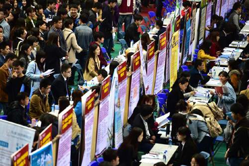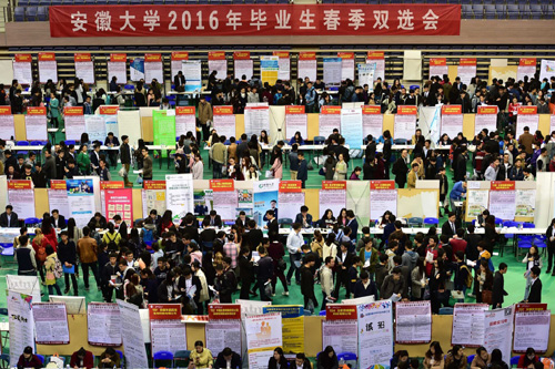 这是安徽大学2016年毕业生春季双选招聘会现场(4月6日摄)新华社记者 刘军喜 摄。