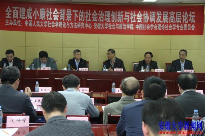 本网讯(通讯员 张军)4月16日至17日,“全面建成小康社会背景下的社会治理创新与社会协调发展”高层论坛在我校举行。本次论坛由安徽大学社会与政治学院、中国人民大学社会学理论与方法研究中心、中国社会学会理论社会学专业委员会联合举办。
