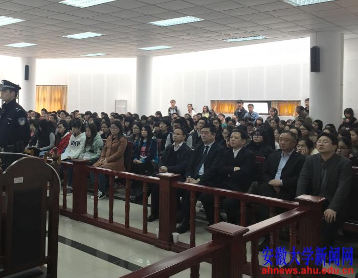 在由合肥市包河区人民法院审理的诈骗案庭审现场,除了对犯罪事实的审查,法官在庭上还就被告人诈骗行为的社会危害性进行了警示和教育,使学生在直观了解庭审程序的基础上受到了一次生动的法治教育。