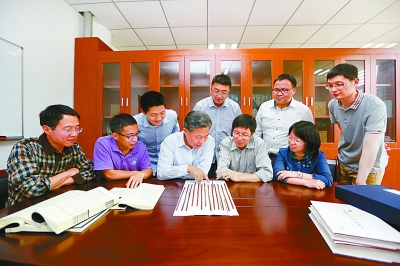 安徽大学黄德宽教授研究团队在研读竹简内容。吕昊摄