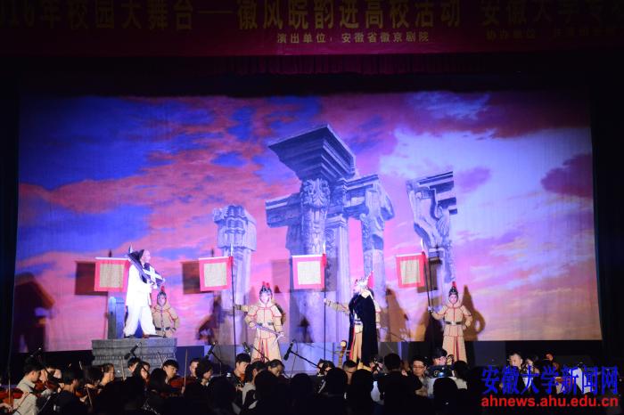 此次京剧专场演出由省委宣传部、省教育厅、省文化厅主办,校团委协办。安徽乐团、安徽省徽京剧院参加演出,其中省徽京剧院民乐团、安徽乐团全程伴奏,徐宏指挥。