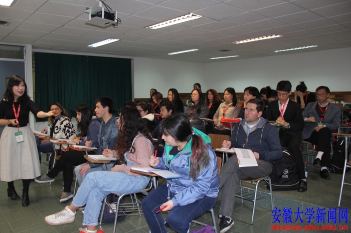 本网讯(甘慧媛)日前,来自智利16个城市的24名汉语教师齐聚一堂,参加智利圣托马斯大学孔子学院各教学点本土教师培训大会。通过培训,很多年轻的教师和志愿者从拥有丰富经验的汉语教师那里学到了专业的汉语本体知识和教学技能,大家相互交流教学经验,探讨教学方法。