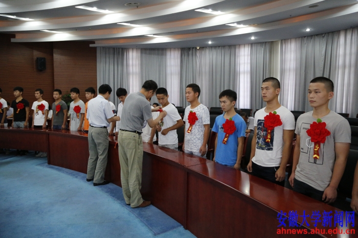 “我们即将离开母校,因为必须要去履行我们的承诺,报效祖国。但无论走到哪里,都会谨记我们是安徽大学的学生,为母校争光,让母校因为我们而自豪,作为一名军人是我们无悔的选择。”这是即将奔赴军营的物理与材料科学学院14级学生吉雅泰的动情发言。