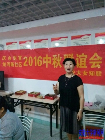 本网讯(黄玉桂)9月13日上午,安徽大学女知联在龙河路社区会议室举行2016中秋联谊会。来自学校、企业的近百名离退休职工参加了活动。