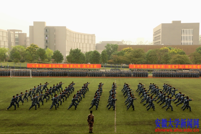 会上举行了军训成果展示和整体队列动作展示。喊着激昂的口号,迈着整齐的步伐,由5100名参训新生组成的方阵向主席台缓缓走来,接受检阅。同学们还展示了军体拳和队列队形表演,铿锵有力的步伐,整齐划一的动作,充分展现了军事训练的优良成果,彰显了安大学子的精神风貌,诠释了新时期的长征精神。