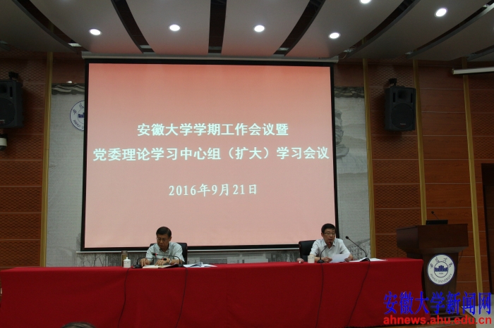 本网讯(新闻中心 李贤 学生记者 刘成浩)9月21日,学校召开学期工作会议暨党委理论学习中心组(扩大)学习会。校党委书记李仁群主持会议,校长程桦作工作报告,部署本学期工作。副校长王群京、虞宝桃、俞本立、薛照明、程雁雷出席会议,全校处以上干部参加会议。