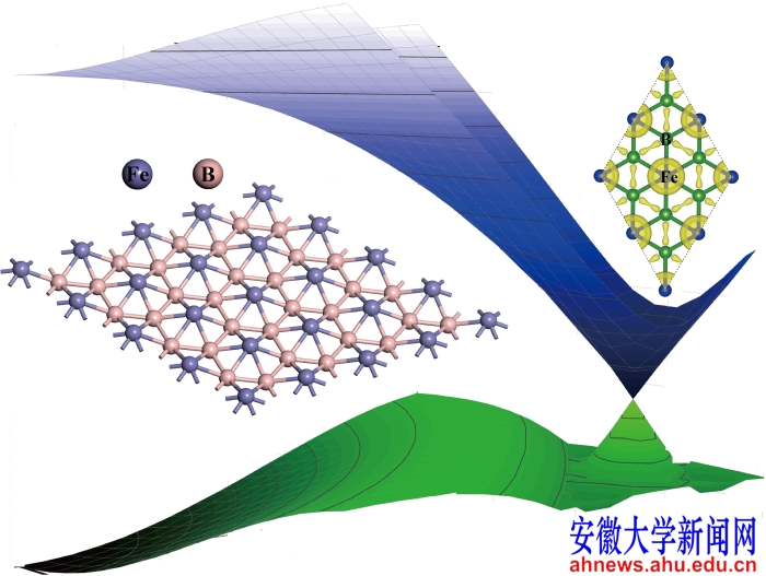 本网讯(新闻中心通讯员 张西光)日前,安徽大学物理与材料科学学院张海军老师与美国波多黎各大学陈中方教授课题组合作开展前沿科学研究,在二维狄拉克材料的设计与机理研究方面取得了最新进展,相关研究成果《Dirac State in the FeB2 Monolayer with Graphene-like Boron Sheet. Nano Lett., 2016, DOI:10.1021/acs.nanolett.6b02335》发表在影响因子为13.779的国际权威期刊《Nano Letters》上。