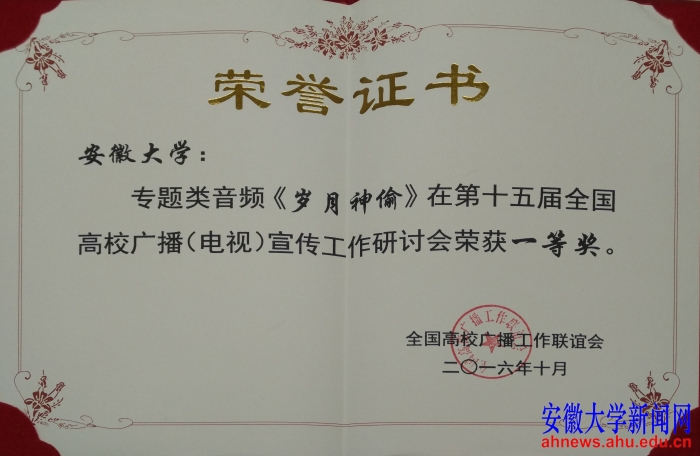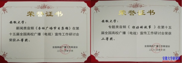 本网讯(新闻中心 蔡丽丽)全国高校广播工作联谊会2016年年会暨第十五届全国高校广播(电视)宣传工作研讨会日前在合肥召开。会上对各高校提交的论文和音频作品进行了评比并进行了颁奖。我校广播台选送的音频作品《岁月神偷》获一等奖,选送的另外2个音频作品分获二等奖。