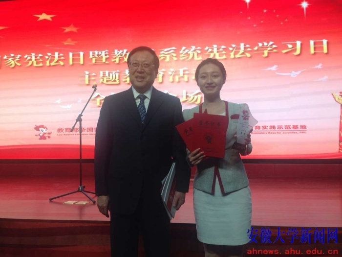 本网讯(胡斗猛)11月27日-30日,全国学生“学宪法讲宪法”主题演讲比赛在北京举行。我校法学院2014级法学专业学生梁新意代表安徽省参加大学组比赛,经过两轮晋级赛进入全国总决赛,荣获全国特等奖和最佳内容奖。