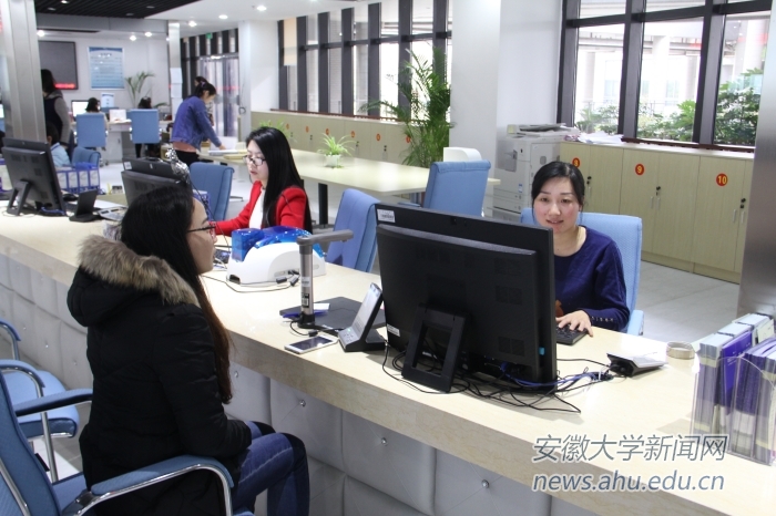 刘凤老师之前一直在现代教育技术中心办公室的前台工作,直至今年7月师生综合服务大厅试运行后,她被调到这个窗口。据她介绍,窗口主要办理与校园卡、校园网、电子邮箱、数字安大相关的业务,具体有补办或者解冻校园卡、修改校园网帐号密码、申请邮箱、教职工缴纳网费等事项。目前,涉及现代教育技术中心服务师生的业务,基本都可以在这里办理,尤其是教职工缴费和更换校园卡照片等事项办理仅能在窗口进行操作。