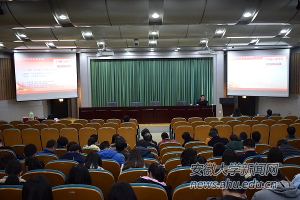 11月23日,宣讲团成员、哲学系教授裴德海在磬苑校区为文学院和哲学系师生作宣讲报告。