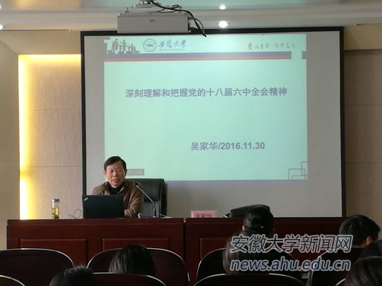 本网讯(新闻中心)连日来,校理论宣讲团成员裴德海、吴家华、吴学琴、钱宝平、丁先存、张启兵等,先后来到哲学系、文学院、外语学院、新闻传播学院、图书馆、后勤产业集团、离退休干部处、国际商学院、化学化工学院,开展学习贯彻党的十八届六中全会精神宣讲报告。一场场报告会,内容丰富、视野开阔、观点鲜明、阐述透彻;一次次精彩的宣讲,让中央精神在学校落地生根鼓舞人心。
