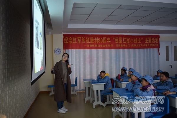 本网讯(新闻中心通讯员 陈雅珺)连日来,历史系“兰台之家”学生党员联合安徽省博物院、合肥市滨湖明珠社区举办“我是红军小战士”纪念红军长征胜利80周年系列活动,9名学生志愿者赴滨湖社区参与此次活动。