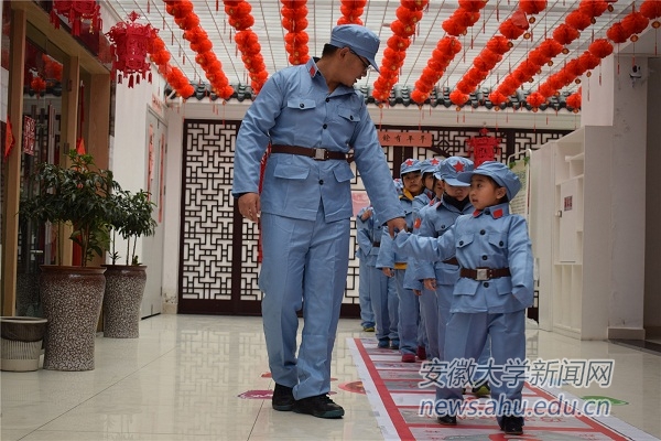 邓金田同学对“小战士”进行“军事训练”