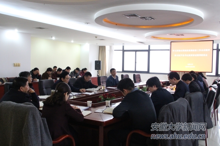 李仁群在主持会议时强调指出,全校上下要把深入学习宣传贯彻全国高校思想政治工作会议精神作为当前和今后一个时期的重要政治任务,切实抓紧抓好。一要系统学习。特别是对习近平总书记重要讲话精神和中央关于加强和改进新形势下高校思想政治工作的意见精神做好系统学习传达。二要统筹规划。把立德树人作为中心环节,把思想政治工作贯穿教育教学全过程,实现全程育人、全方位育人。三要科学实施。办好思想政治理论课,发挥好哲学社会科学、自然社会科学育人功能,加强各类阵地建设管理,加强教师队伍和思想政治工作队伍建设,不断提高工作能力和水平。