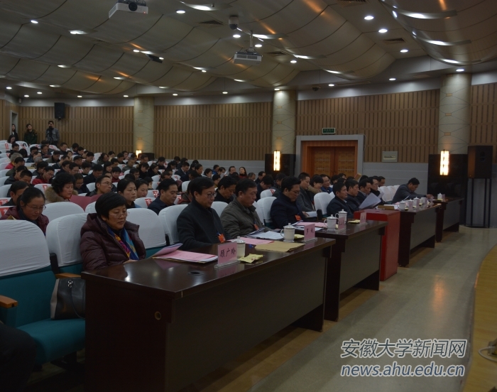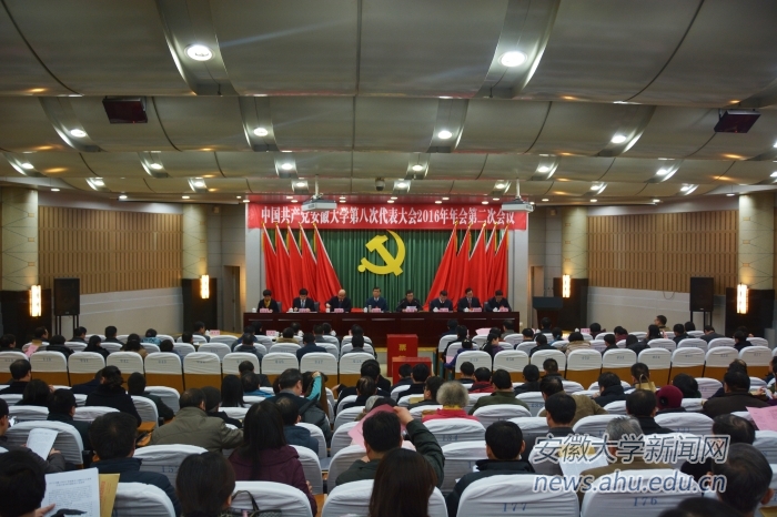 本网讯(新闻中心 吕昊 学生记者 潘泽昊 钟正浩)12月28日下午,中国共产党安徽大学第八次代表大会2016年年会全体会议在龙河校区逸夫图书馆第一会议厅召开。会议全面总结回顾第八次党代会以来特别是2016年党的建设和发展取得的成绩,聚焦全面从严治党、“十三五”规划实施和“双一流”建设,明确2017年目标任务。