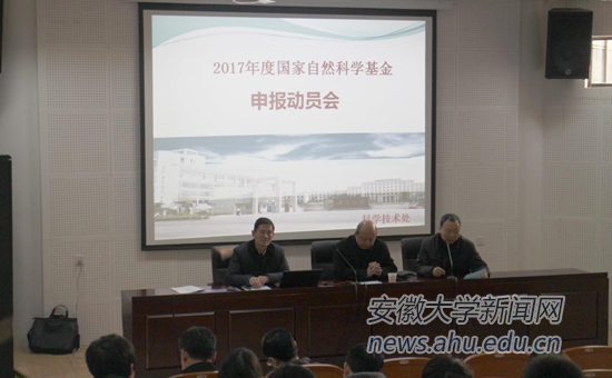 会上,科学技术处处长肖亚中作了《安徽大学国家自然科学基金工作报告》,青年教师代表王学军交流了科研体会,中国科学技术大学李晓光教授作了国家自然科学基金项目申报专题报告。