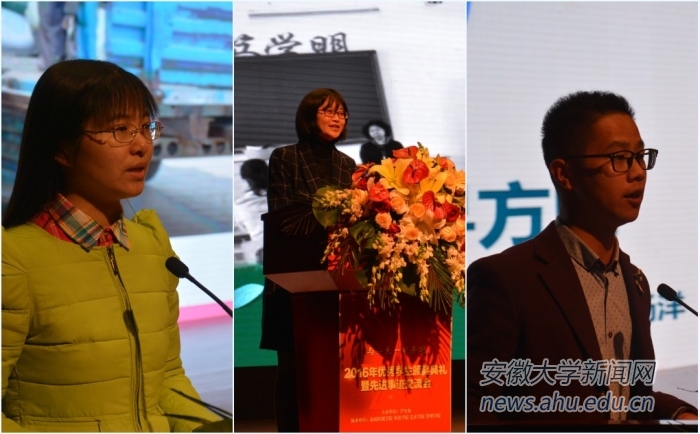 会议由外语学院团委书记李瑞瑞主持,安徽大学党委学工部主办,新闻传播学院、外语学院、艺术学院、管理学院协办。校学生资助工作领导小组成员、院系分管学生工作负责人、团委书记、辅导员、学生处工作人员、获奖学生代表等参加典礼。
