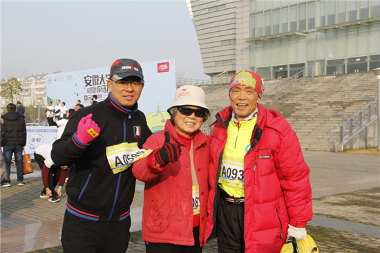 据悉,安徽大学校园马拉松全程长约6.8公里,线路覆盖了全校的主干道,从校园的北门口的体育馆出发,依次经过西门、南门、东门,最后回到北门。安大校友束女士这次带着父母和爱人一起回到母校参加校园马拉松,她说父亲为了参加这个马拉松,特地从老家宿州赶过来,还动员妈妈和不爱运动的女婿一起来。束女士表示,毕业以后,能以这样的理由回到母校,真是开心极了。明年的校园马拉松,我们全家人还会参加。