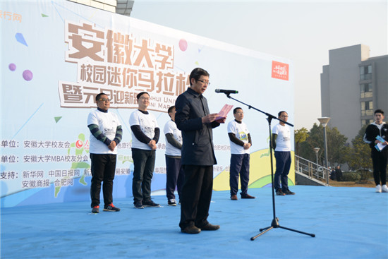 8:50,安徽大学校园马拉松开幕式正式开始,安徽大学党委副书记、校长程桦先生的亲切致辞,欢迎校友回母校参加跑步运动,勉励安大学子既要学习好本领,更要有一个强壮的身体。举办校园迷你马拉松,有这么多师生校友来参加,这是安徽大学师生员工和校友的激情展示,也是跑步这项热门运动火爆校园的表现。