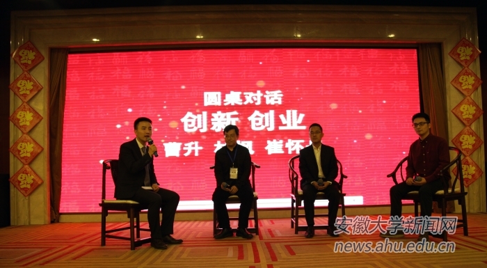 本网讯(新闻中心 吴磊)日前,安徽大学在北京工作的200余名校友在新年之初汇聚在北京新兴宾馆,以“创新创业,科技兴邦”为主题,畅所欲言。校党委书记李仁群、校长程桦、校友会会长黄德宽出席会议。