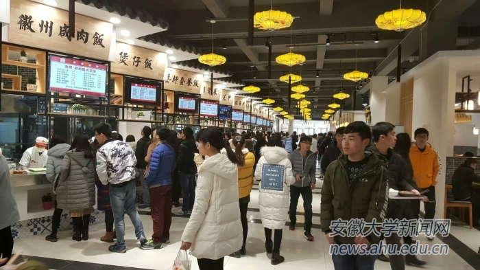 外语学院16级学生刘玉琴说:“梅园食堂装修后,比以前上档次多了。环境优美,音乐悠长,像咖啡厅一样,给人舒适休闲的温馨。不过人们总对新事物有好奇心,加上食堂的座位又少,找座位便成了难题。”