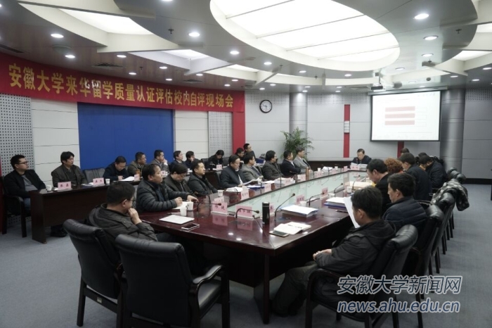 本网讯(新闻中心通讯员 王静,新闻中心 吕昊)日前,学校在龙河校区逸夫图书馆召开来华留学质量认证校内自评会,副校长薛照明出席会议。自评会由国际教育学院院长徐鸣主持,来自校内外的专家和来华留学质量认证自评委会成员单位的主要负责人参加会议。