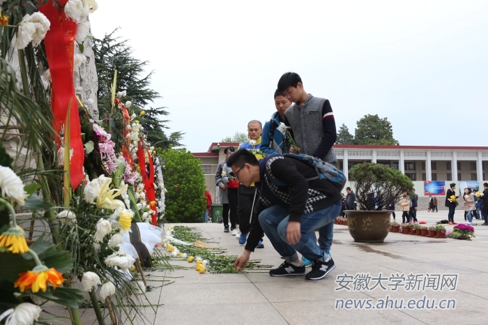 本网讯(团委)清明节期间,由我校教育基金会、校团委、爱心服务中心共同主办的“祭奠英魂,缅怀先烈,弘扬美德”2017年安徽大学爱心服务中心清明节蜀山烈士陵园扫墓活动隆重举行,我校奇瑞爱心社、唐仲英爱心社等11家爱心社的132名志愿者参加了本次活动。