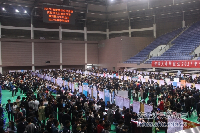 本网讯(新闻中心学生记者 方俊丽 江凌玲)4月8日,我校2017年毕业生春季双选会在磬苑体育馆举行,吸引了200多家用人单位到场选拔人才。校党委副书记、常务副校长王群京,省教育厅学生处处长左其琨,省大中专毕业生就业指导中心副主任袁江林等在双选会现场检查指导工作,看望毕业生,了解用人单位需求和毕业生就业情况。