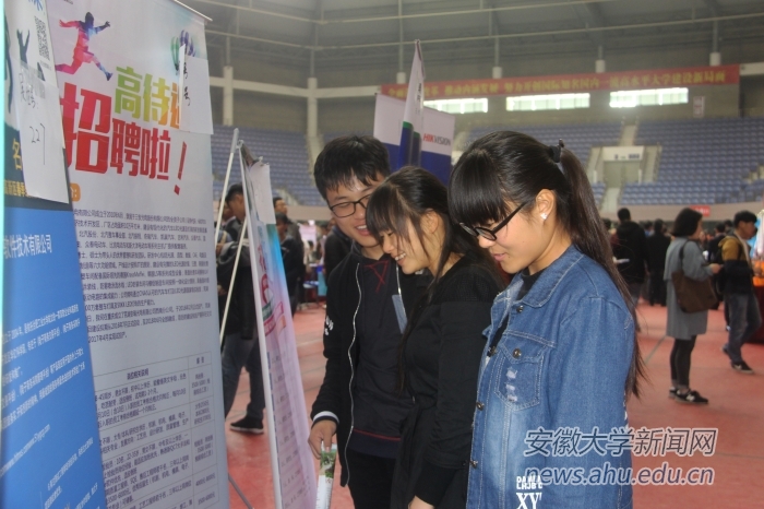 北京课观教育科技有限责任公司在双选会最初半小时里收到了四五份简历,该公司招聘负责人说:“我们对专业没有限制,安大的学生也都挺优秀的,我们之后还有面试,会根据综合情况来留取人才。”溜溜果园集团的培训讲师说:“我们更加关注毕业生个人的综合能力,看他是否适合所应聘的岗位,哪怕专业不对口也没有关系。”